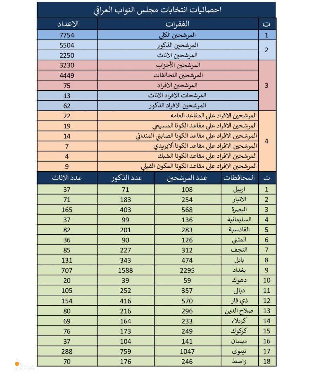 نشرت المفوضية العليا المستقلة للانتخابات، اليوم الأحد، إحصائية جديدة لانتخابات مجلس النواب لعام 2025.