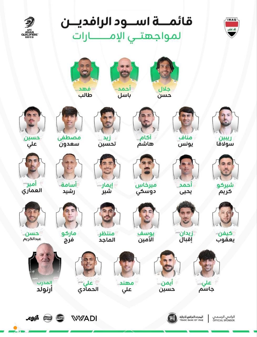 أعلن المدرب غراهام ارنولد، اليوم الخميس، القائمة النهائية لمنتخبنا الوطني لمباراتي الإمارات في الملحق الآسيوي الحاسم المؤهل إلى كأس العالم 2026.