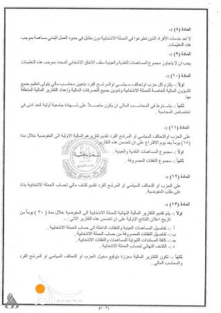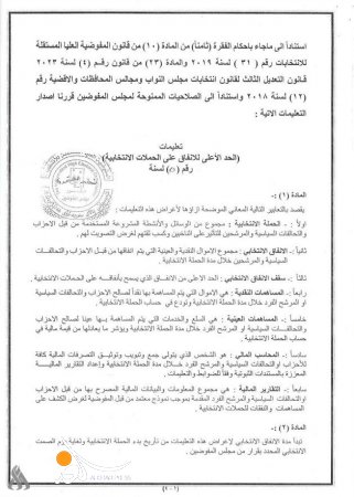 أصدرت المفوضية العليا المستقلة للانتخابات، اليوم الأحد، تعليمات بشأن الحد الأعلى للإنفاق على الحملات الانتخابية.