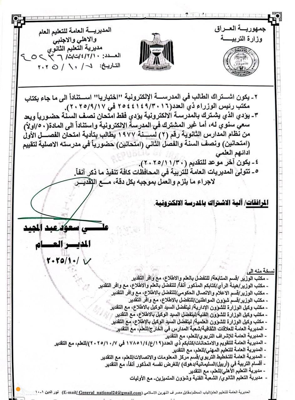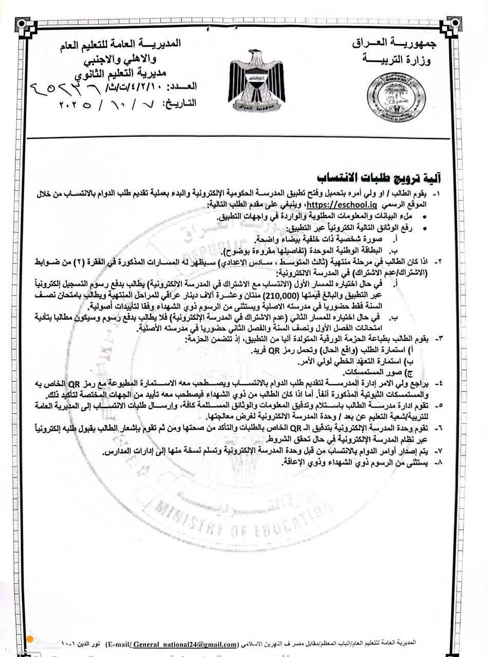 التربية تعلن ضوابط الانتساب لطلبة المراحل الثانوية